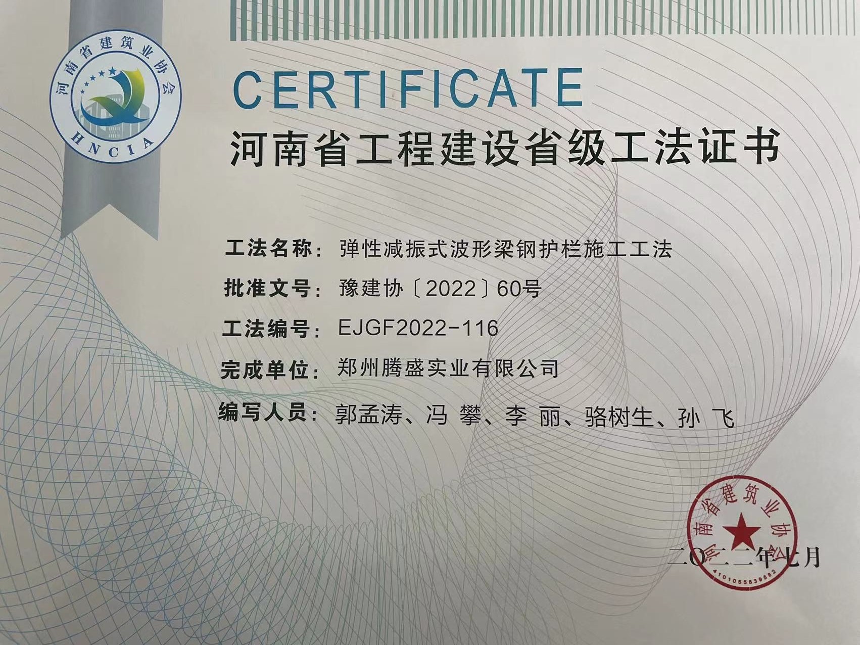 近日,我公司關(guān)于“彈性減震式波形梁鋼護(hù)欄施工工法”順利通過河南省建筑業(yè)協(xié)會(huì)批準(zhǔn),取得相應(yīng)省級工法證書,該工藝的順利批準(zhǔn),標(biāo)志著我公司在波形梁鋼...