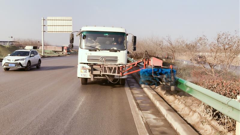 為應(yīng)對(duì)當(dāng)前嚴(yán)峻形式,養(yǎng)護(hù)公司經(jīng)過緊急磋商,制定出詳細(xì)計(jì)劃,一方面針對(duì)路況揚(yáng)塵采取24小時(shí)不間斷灑水,同時(shí)加強(qiáng)人工、機(jī)械的保養(yǎng)力度。另一方面進(jìn)行路況調(diào)查,積極擬定方案對(duì)路面病害進(jìn)行小修整治,計(jì)劃對(duì)沿線路邊石、波形板、標(biāo)牌等進(jìn)行更換,對(duì)全路段的標(biāo)線重新粉刷。為提升路域環(huán)境,工區(qū)專門調(diào)派機(jī)械車輛每天清洗綠化帶和護(hù)欄。