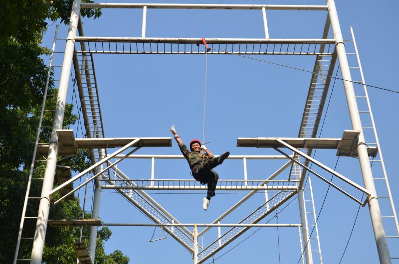 此次活動的主題是“揚和諧團隊之帆 鑄路通公司之艦”。開營儀式后,參訓人員被隨機劃為2個小分隊,以集體商議的方式確定了各自的隊長、副隊長,隊名、口號、隊歌,并繪制隊旗、分別進行了展示。隨后,兩隊展開角逐,火熱的賽場上隊員們個個精神飽滿、情緒激揚,自始至終圍繞團結(jié)一致、勇創(chuàng)佳績的團隊目標,全力沖刺、奮力拼搏,相繼完成了同起同坐、達芬奇密碼、信任背椅、高空斷橋、杯水傳情、信任之旅、穿越電網(wǎng)、不倒森林、畢業(yè)墻等項目,充分展示了路通公路人全力以赴、團結(jié)協(xié)作、勇于爭勝、永不放棄的精神和風采。