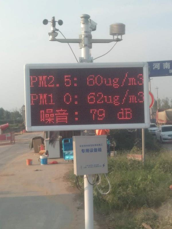 在該項目部門口,豎著一塊電子屏,上面不僅顯示氣溫、風速、風向、濕度和噪音,還顯示PM10和PM2.5濃度,這就是新近安裝的揚塵在線監(jiān)測系統(tǒng)。該揚塵在線監(jiān)測系統(tǒng)具有實時在線監(jiān)測污染顆粒物濃度、噪聲強度、氣象參數(shù)功能,24小時在線連續(xù)監(jiān)測,超過報警值時還能自動啟動監(jiān)控設備。
