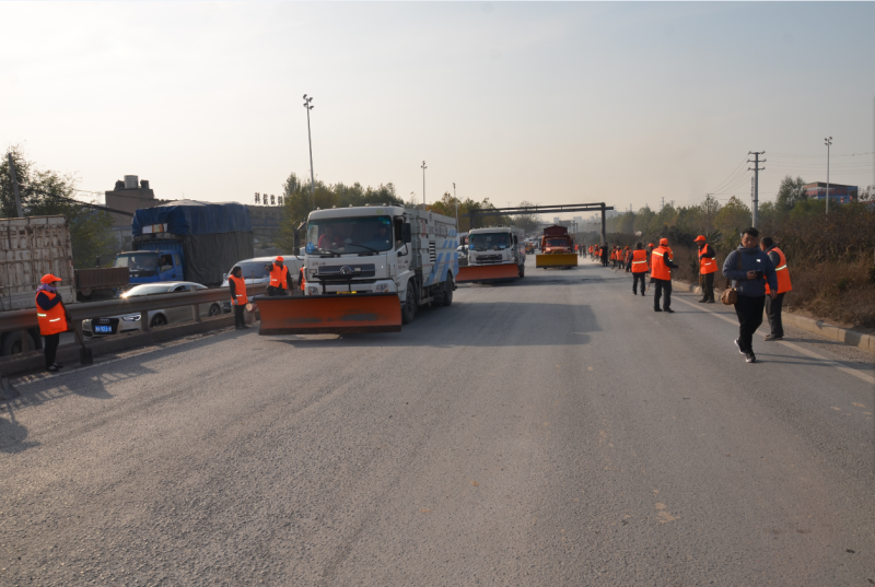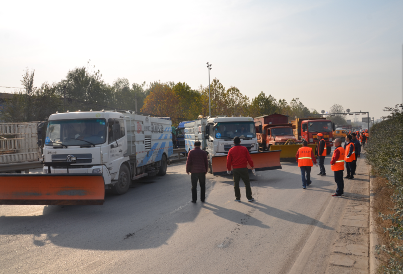 為全面做好今冬明春我公司所管養(yǎng)路段除雪保暢工作,規(guī)范作業(yè)程序,提高除雪鏟冰速度和質(zhì)量,努力做到“雪中路通、雪停路清、雪后不滑”,11月21日下午2點(diǎn)30分,路通公司在嵩山南路與南四環(huán)立交處開展了冬季除雪保暢應(yīng)急演練。養(yǎng)護(hù)公司副經(jīng)理張宏斌主持此次演練,路通公司黨委副書記、紀(jì)委書記秦舸到現(xiàn)場(chǎng)觀摩。此次應(yīng)急演練共計(jì)出動(dòng)人員50余人、6臺(tái)機(jī)械設(shè)備。