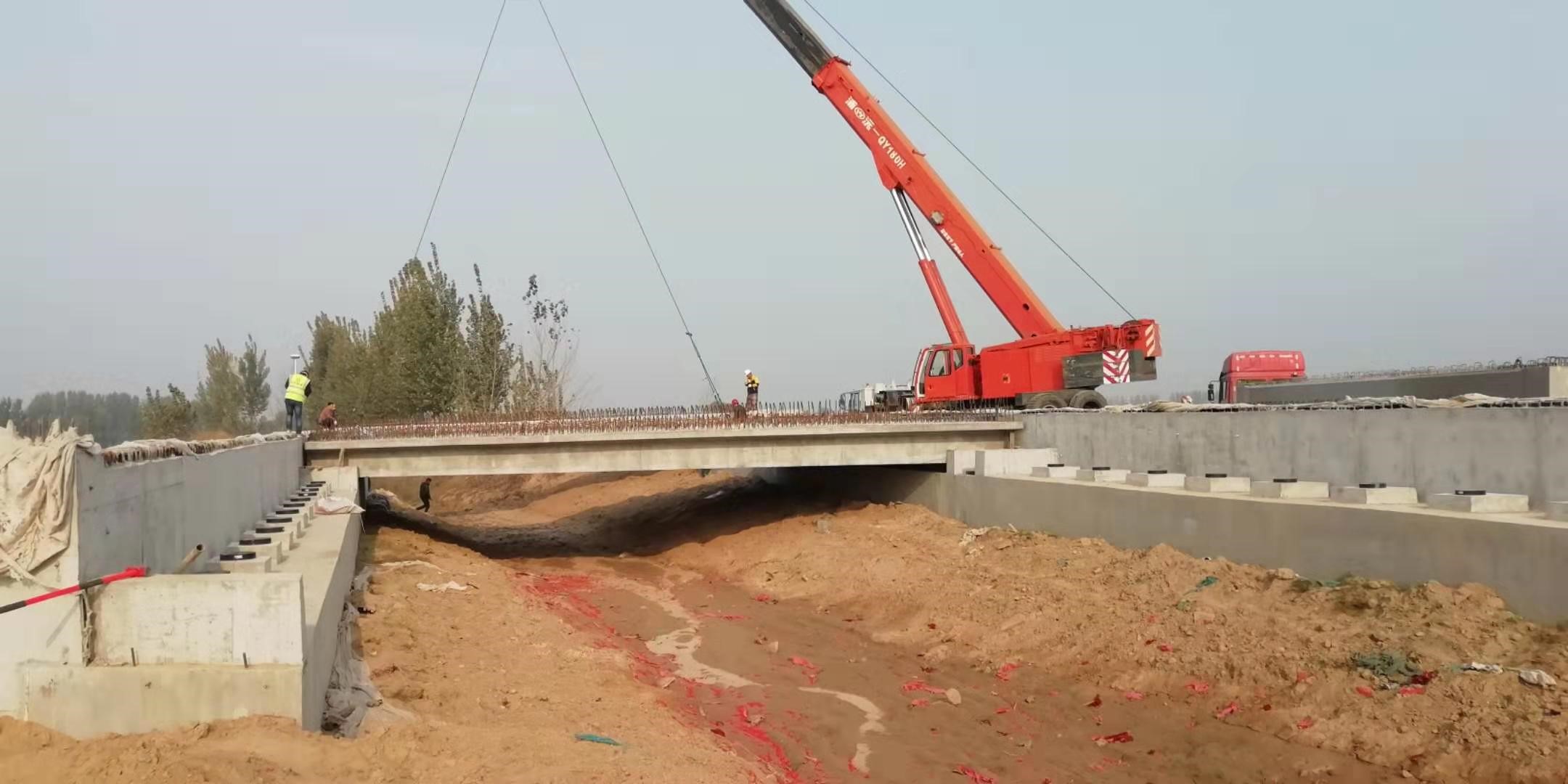 2019年11月16日上午,經(jīng)過項目自檢、監(jiān)理抽檢、三方監(jiān)督的程序?qū)Φ竭_(dá)現(xiàn)場每一片梁板檢查,隨后在鞭炮聲中開始了S312項目第一片梁板的安裝;歷時6個多小時,架設(shè)了26片空心板;完成了丁村支渠小橋上部結(jié)構(gòu)梁板的安裝。