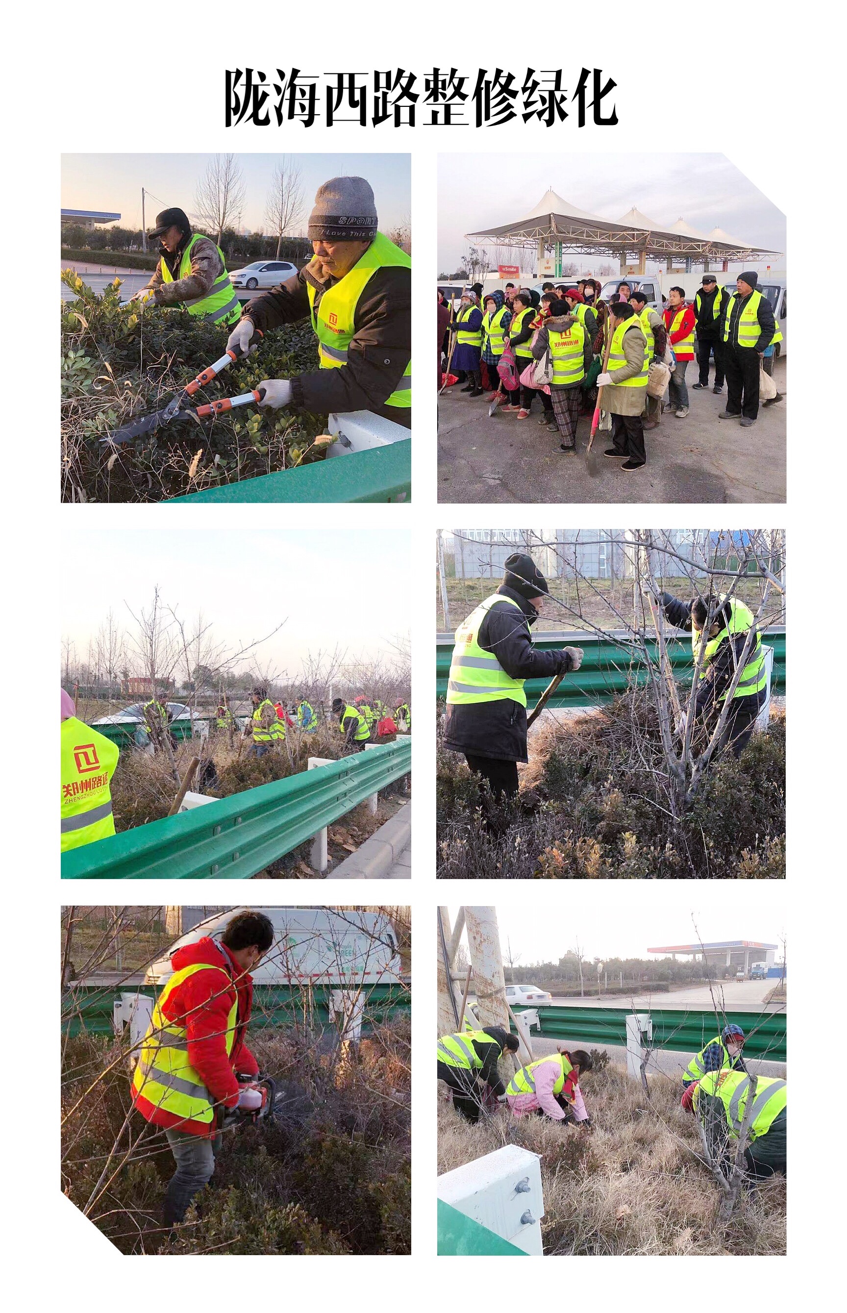 隴海西路位于鄭州與滎陽(yáng)交接處,是連接城市的重要出入市口,綠化帶的規(guī)劃對(duì)于公路而言有著極其重要的意義和作用,不僅是城市綠化景觀、環(huán)境保護(hù)的需要,而且從一定的角度講還可以阻擋快車道和慢車道間的灰塵擴(kuò)散。為進(jìn)一步提升所轄公路路域環(huán)境,養(yǎng)護(hù)部每日組織50人員將綠化帶內(nèi)枯株、死株、雜草、垃圾進(jìn)行了拉網(wǎng)式的徹底清理,對(duì)綠化帶內(nèi)黃土裸露部位鋪設(shè)防塵網(wǎng),同時(shí)對(duì)綠化帶護(hù)欄進(jìn)行清洗和維修。目前已完成約350米的綠化帶修整。整治后的各路段綠化帶將煥然一新,出行品質(zhì)得到了整體提升,路域顏值得以全面刷新。