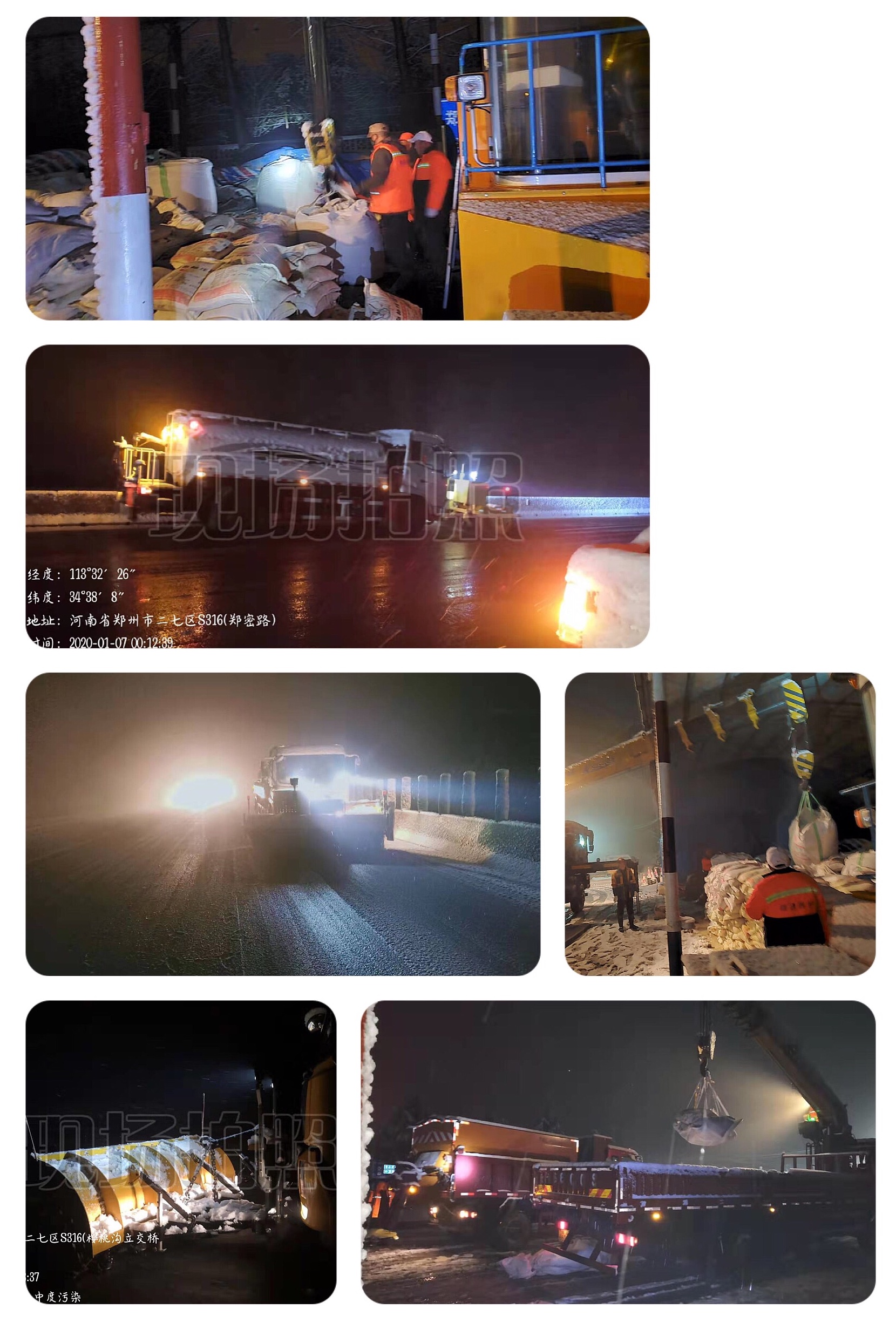 2020年1月6日晚,我市突降暴雪。根據(jù)降雪情況,各路段負(fù)責(zé)人立刻奔赴第一線,緊急啟動(dòng)《公路除雪應(yīng)急預(yù)案》。養(yǎng)護(hù)人員按照既定工作方針,調(diào)集除雪車輛和人員,在對重點(diǎn)防滑路段、橋梁及事故多發(fā)區(qū)進(jìn)行了融雪劑的撒布,全力開展公路除雪防滑工作。此次行動(dòng)共出動(dòng)巡查車6輛、撒布車4臺、雪鏟車4臺、雪滾2臺、自吊2臺,使用融雪劑15噸,出動(dòng)養(yǎng)護(hù)人員60人,確保了轄區(qū)內(nèi)公路無積雪、積冰。