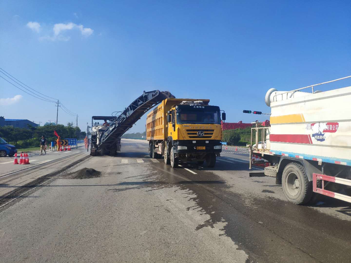 在創(chuàng)優(yōu)的過程中,養(yǎng)護分公司采取多項措施創(chuàng)造精品工程,樹立企業(yè)形象。一是落實安全文明生產(chǎn)管理制度。各項目嚴格貫徹落實“安全第一、預防為主”的方針,由于S227和G310項目施工中均采用標準道路養(yǎng)護作業(yè),進行部分車道封閉施工,不影響車輛正常通行。為確保施工人員和行人的生命安全,公司領(lǐng)導要求在施工過程中警示標牌擺放規(guī)范,施工結(jié)束后,公路路面及時清理干凈,不可遺留是施工材料影響行人通行;二是強化宣傳意識提升企業(yè)形象。為維護企業(yè)形象,為開拓市場打下堅實的基礎(chǔ),各施工項目、保潔項目統(tǒng)一著裝,制作宣傳冊、宣傳圖板,施工現(xiàn)場張貼醒目整潔的公司LOGO,作業(yè)中全力維護好施工現(xiàn)場秩序、機械設備擺放,確保整個施工現(xiàn)場保持井然有序、生機勃勃的作業(yè)場面;三是規(guī)范施工流程打造優(yōu)質(zhì)工程。各項目以“對質(zhì)量高要求,對現(xiàn)場高標準,對項目高定位”為目標,管理人員要加強精細化管理,嚴格按照規(guī)范合理的施工規(guī)范、操作程序、施工工藝開展作業(yè),在推動工程進度的同時,把好質(zhì)量關(guān)是重中之重,確保工程質(zhì)量不出任何問題,全力打造品質(zhì)工程,創(chuàng)建優(yōu)秀項目。