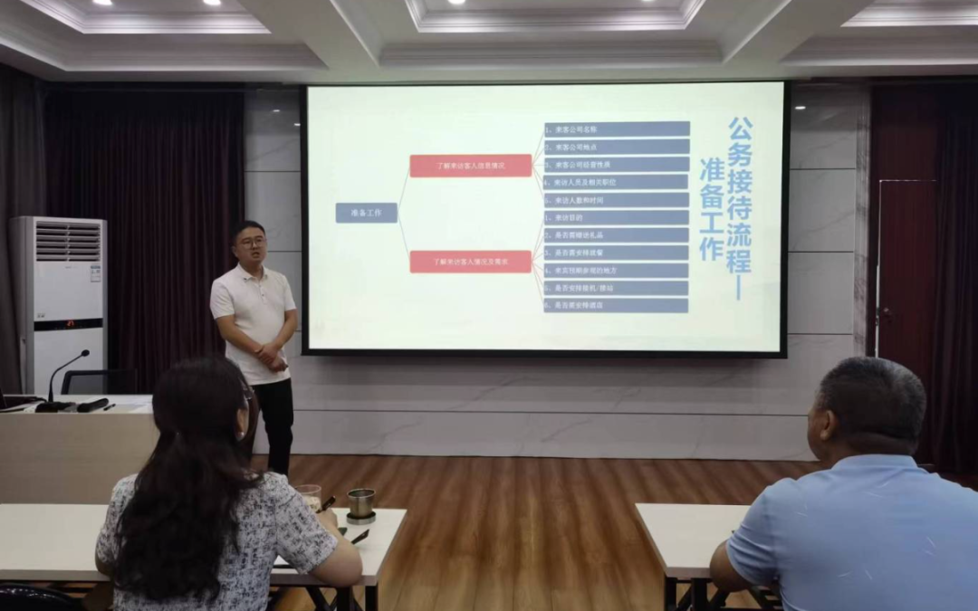 在培訓(xùn)中,高泉海同志圍繞“公務(wù)接待”與“禮儀素養(yǎng)”兩主題,重點(diǎn)針對(duì)接待禮儀、會(huì)議座次安排、物品準(zhǔn)備、拍照站位、用筷文化等方面,用通俗易懂的語(yǔ)言,結(jié)合商務(wù)接待案例進(jìn)行系統(tǒng)講解。內(nèi)容豐富、形象生動(dòng)。在交流討論環(huán)節(jié),大家紛紛表示,此次培訓(xùn)指導(dǎo)性、實(shí)用性強(qiáng),特別是部分知識(shí)在日常工作中接觸不多,很容易被忽視,本次也作了拓展講解,系統(tǒng)提升了公務(wù)接待認(rèn)知水平。