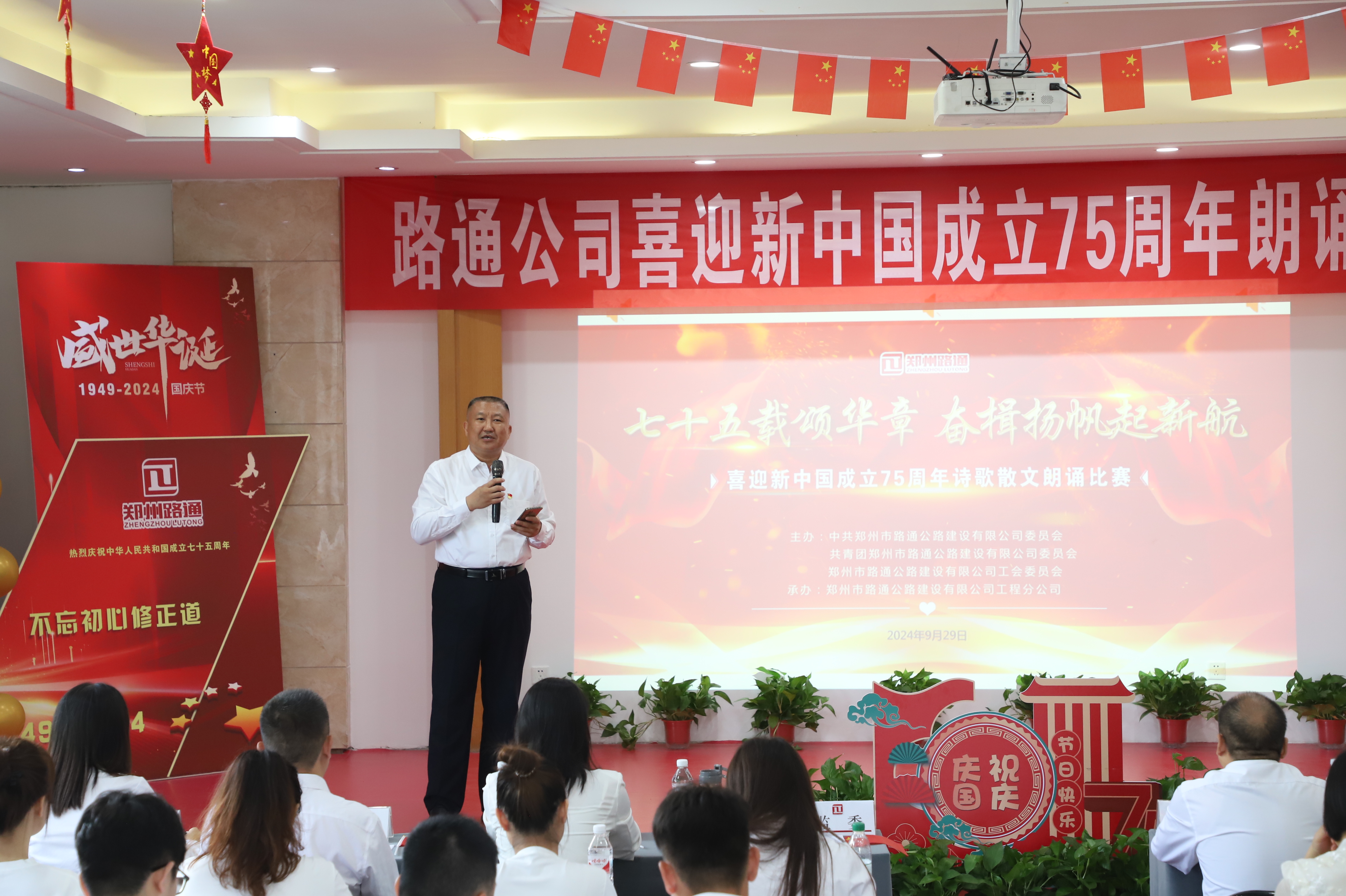 在中華人民共和國(guó)成立75周年到來之際,為抒發(fā)對(duì)祖國(guó)的美好祝愿,展現(xiàn)“不忘初心砥礪奮進(jìn)”新時(shí)代路通人的精神面貌。9月29日上午,路通公司在滎陽(yáng)環(huán)翠峪職業(yè)技能培訓(xùn)中心隆重舉行喜迎新中國(guó)成立75周年朗誦比賽。