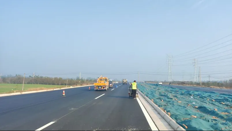 隨著施劃的完成,現(xiàn)場的工人們露出了欣慰的笑容,他們多日來的辛勤付出終于迎來了成果。如今,嶄新的道路宛如一條巨龍蜿蜒伸展,清晰的標(biāo)線為車輛指引著方向,堅固的護欄守護著行車安全,有效的聲屏障減少了噪音干擾。這些標(biāo)線和交安設(shè)施不僅是道路的標(biāo)識,更是安全與秩序的保障。