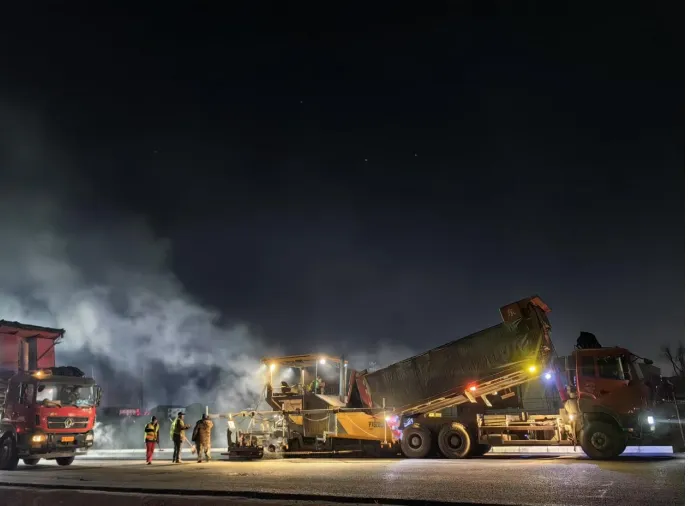 1月15日深夜,國(guó)道107線東移開(kāi)封境(炎黃大道至許昌交界)新建工程的施工現(xiàn)場(chǎng)依舊燈火通明,一片繁忙的景象。大型攤鋪機(jī)有序地將滾燙的瀝青混合料均勻鋪展,壓路機(jī)往返穿梭,有條不紊地將路面壓實(shí)整平。在這寒意逼人的冬夜里,機(jī)械的轟鳴聲,施工人員忙碌的身影以及耀眼燈光相互交織,奏響了一曲勞動(dòng)者的“奮斗之歌”。