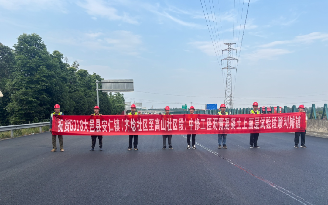 2025年5月21日,隨著最后一車瀝青混凝土攤鋪碾壓完成,G318大邑縣安仁鎮(zhèn)(齊埝社區(qū)至高山社區(qū)段)中修工程瀝青混凝土上面層試驗段順利完工,標志著該項目取得關(guān)鍵性進展,為后續(xù)14公里路面施工奠定了堅實基礎(chǔ)。